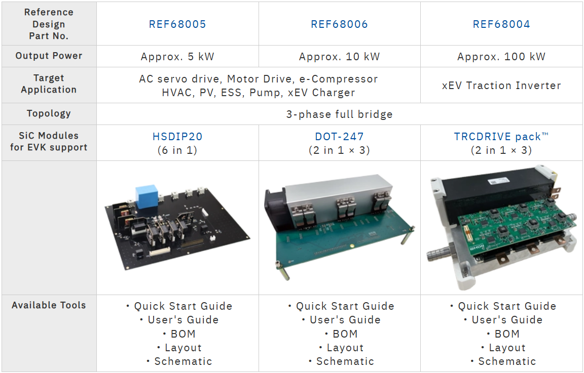 Three types of SiC modules compatible with these reference designs are already available for purchase through online distributors.