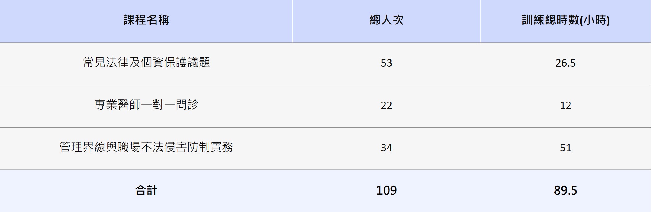 內容包含:安全衛生教育訓練、消防安全訓練、緊急應變、急救人員訓練等。