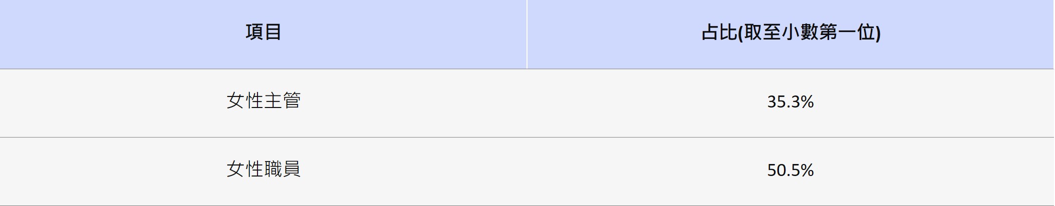 2024年集團台灣地區女性職員及女性高階主管占比