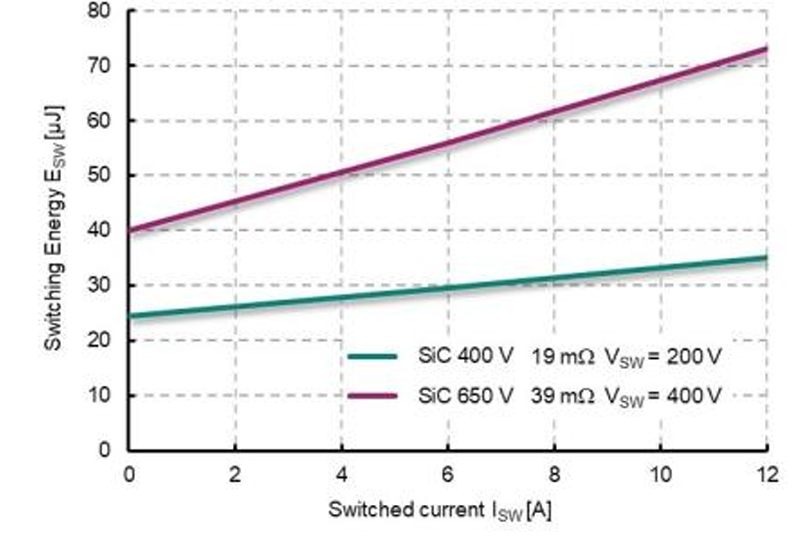 圖3. 400V和650V SiC MOSFET開關損耗的比較