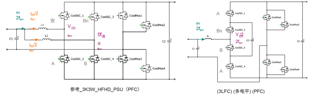 圖5. [3]中實現的交錯圖騰柱PFC與建議的3LFC-PFC的比較