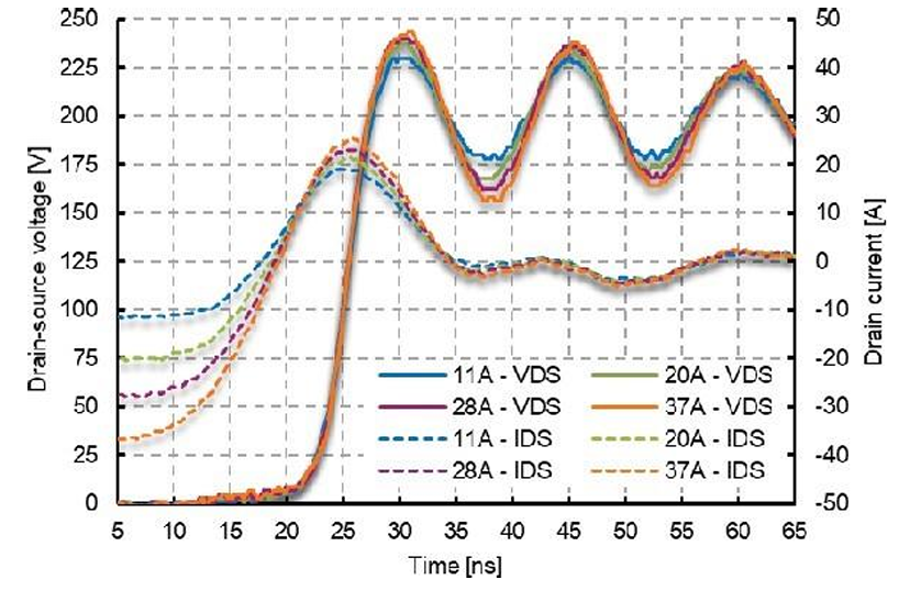 圖4. 400V SiC-MOSFET體二極體在不同電流下的換向