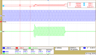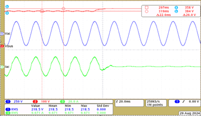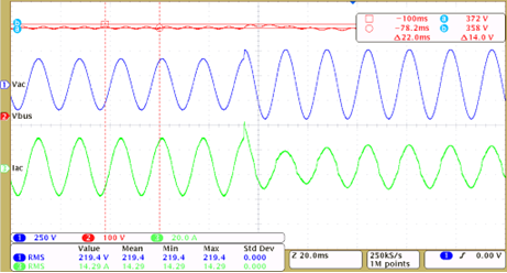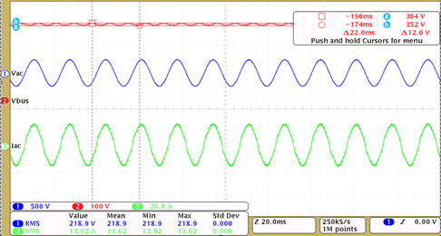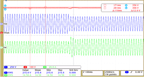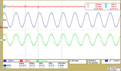 220V, 50Hz, Power = 3kW下輸出電壓ripple僅16V