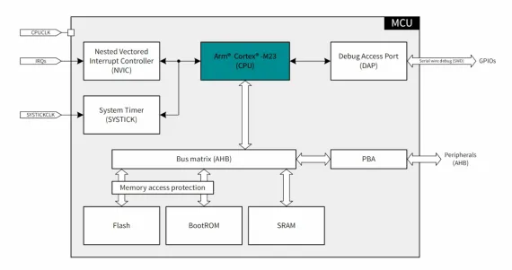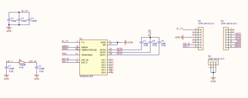 而從內部組成來看,TLD4020整合了一個Cortex M23內核,Cortex-M23是Cortex-M系列中最節能的,使用的是ARMv8-M架構, Arm Thumb+Thumb-2指令集。與核心配套的片上儲存包含:32 kB快閃記憶體、576B記憶體、3 kB SRAM以及用於啟動韌體和快閃程式的Boot ROM 。