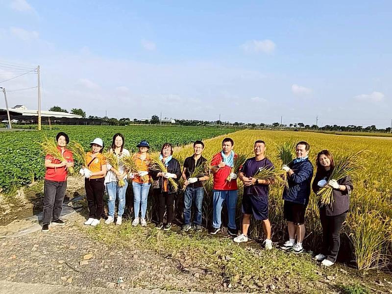 響應企業一早到鄉村體驗割稻,由友酵農場許寶正農友講解水稻知識,企業志工也與鹿草鄉農會家政班共同製作419個便當,致贈碧潭、三角、松竹、下潭、後崛、西井、鹿草、後寮等8村落的長輩,傳遞感恩與祝福。活動除了慶祝稻作收成,也藉由「包便當敬長輩」連結米食文化與社區情感,讓「永續精神」從田間延伸至人與人之間。