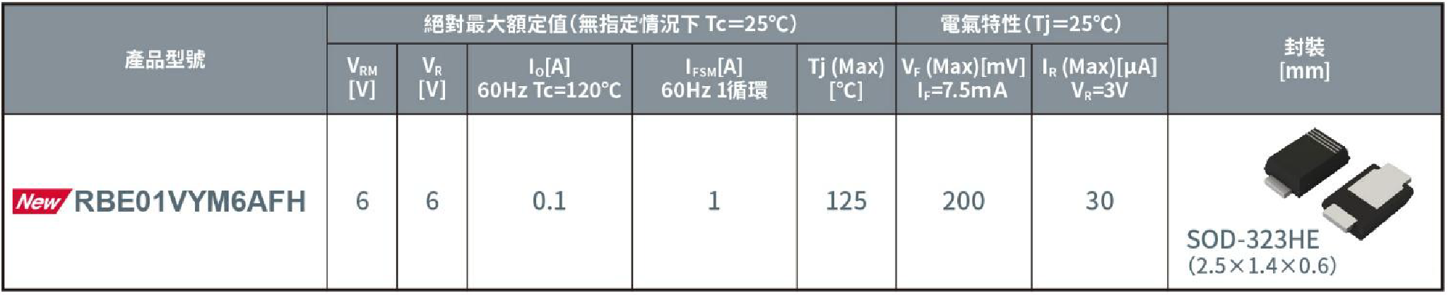 半導體製造商ROHM(總公司:日本京都市)推出一款創新型保護用蕭特基二極體「RBE01VYM6AFH」,該產品在低VF(正向電壓)和低IR(反向電流)兩者難以兼顧的特性之間實現了高度平衡,可為ADAS鏡頭等配備了高畫質感光元件應用,提供高可靠性的保護解決方案。