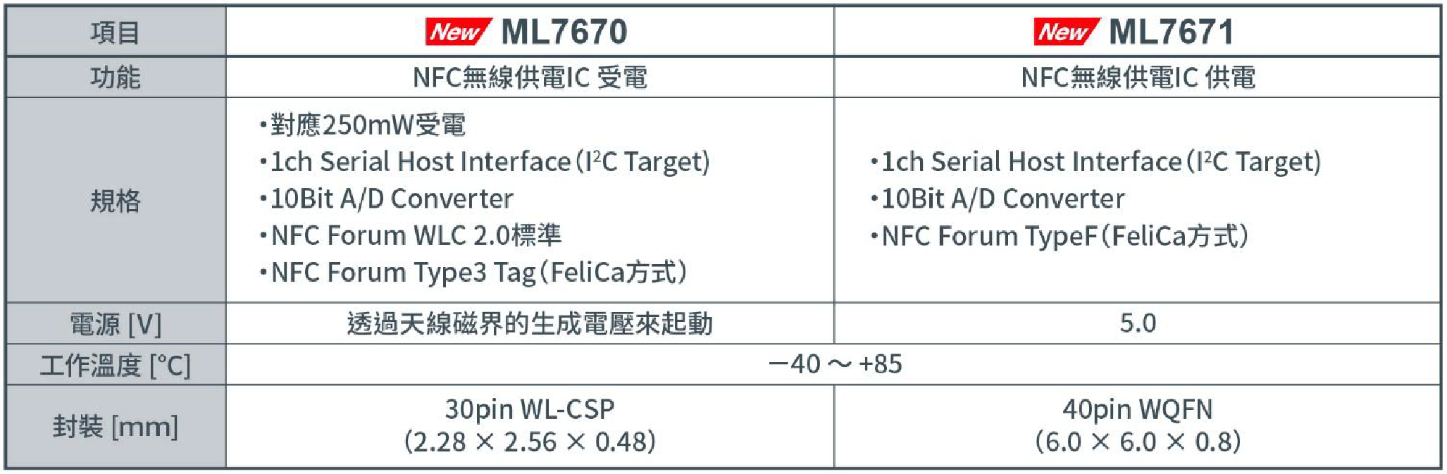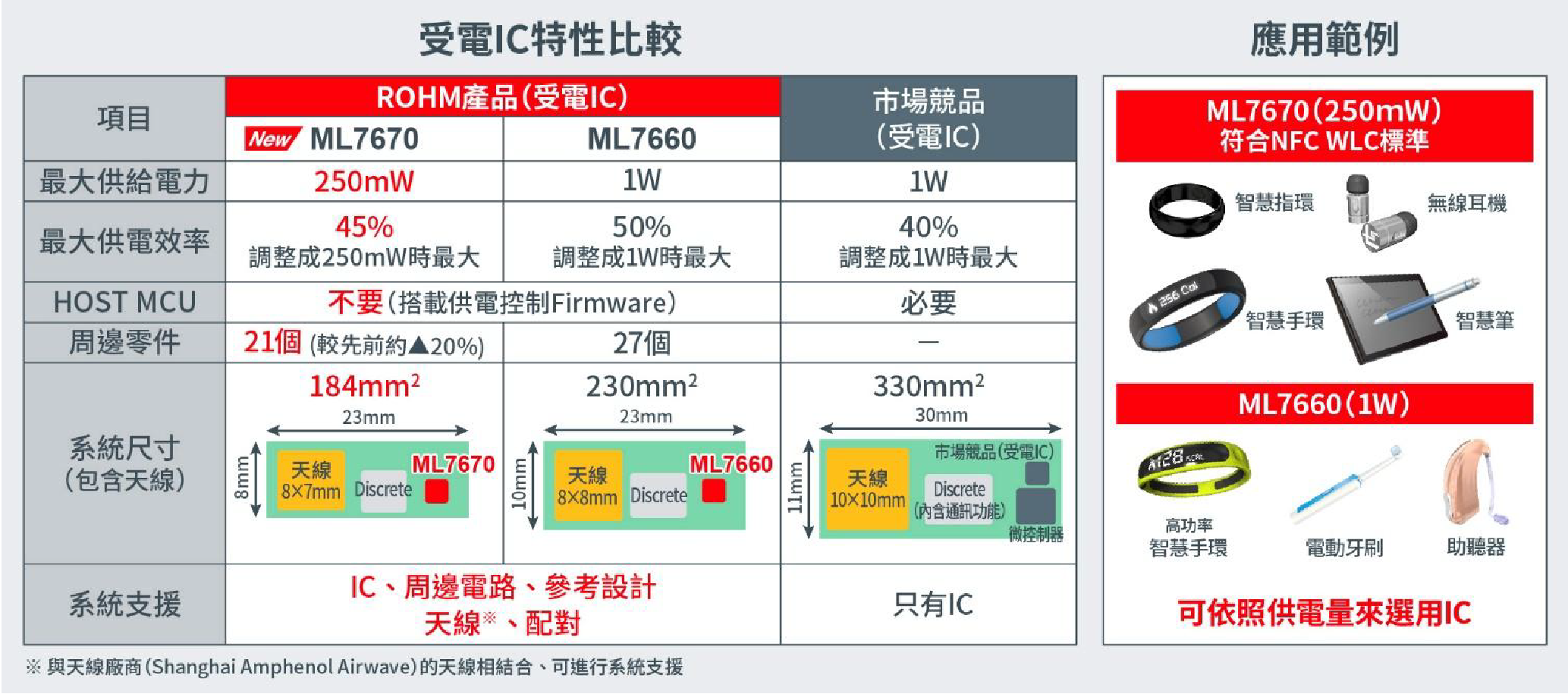 半導體製造商ROHM(總公司:日本京都市)針對智慧指環、智慧手環等小型穿戴式設備,以及智慧筆等小型週邊設備應用,推出支援NFC(近距離非接觸式無線通訊技術)的無線供電IC晶片組「ML7670(接收端)」和「ML7671(發射端)」。